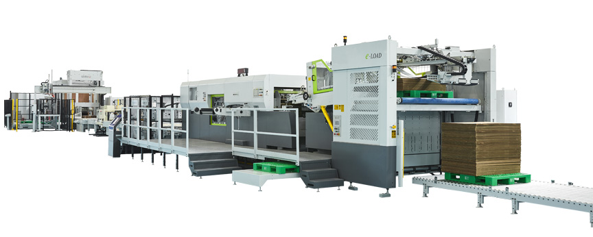 智能联线e-LINE是基于集团成熟的原厂技术,结合旭恒在中国的制造、生产优势,根据国内纸箱包装行业的实际需求,推出的一条全自动、高品质且性价比高的模切机联线。